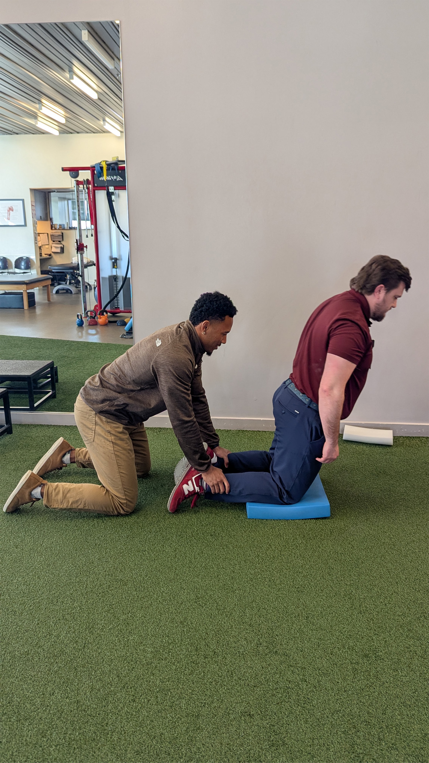 - Eccentric Nordic curls: Start in a tall kneeling position with a partner holding the ankles. Slowly lean forward while using the hamstrings to control the descent as much as possible. Keep the arms outstretched to catch the body at the bottom of the movement, then push back up to the starting position.